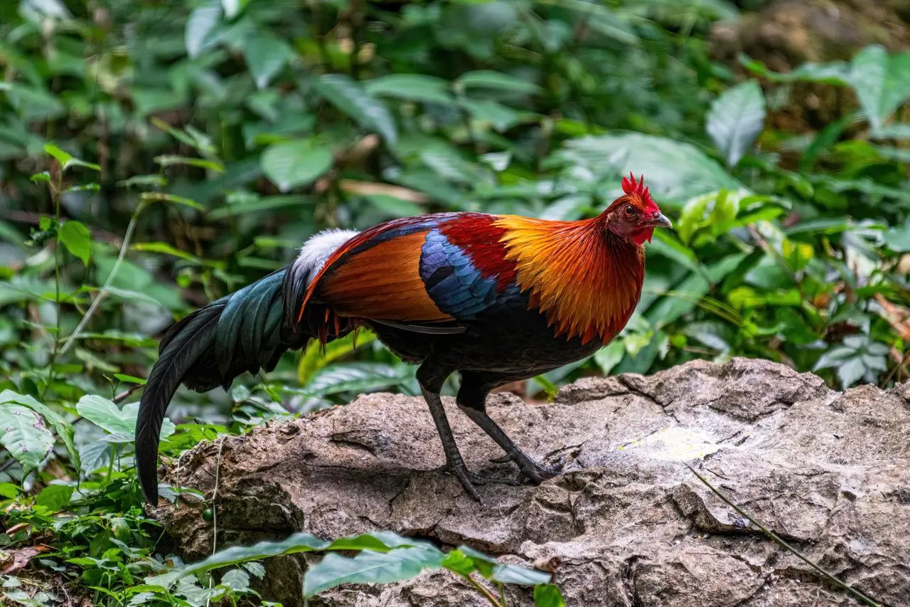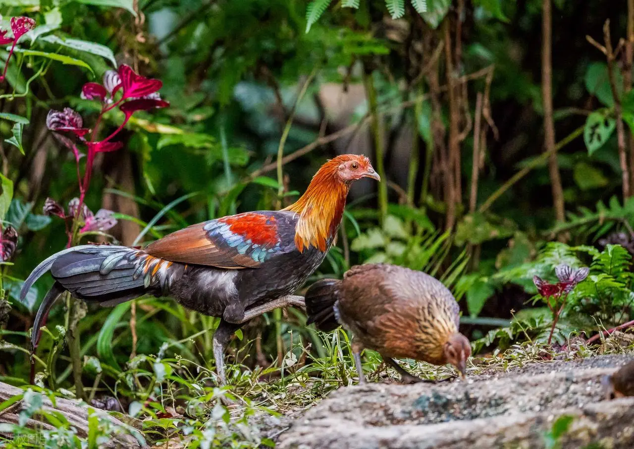 咱们现在吃的家鸡,祖宗是红原鸡,一种生活在东南亚热带丛林里的野生鸟。