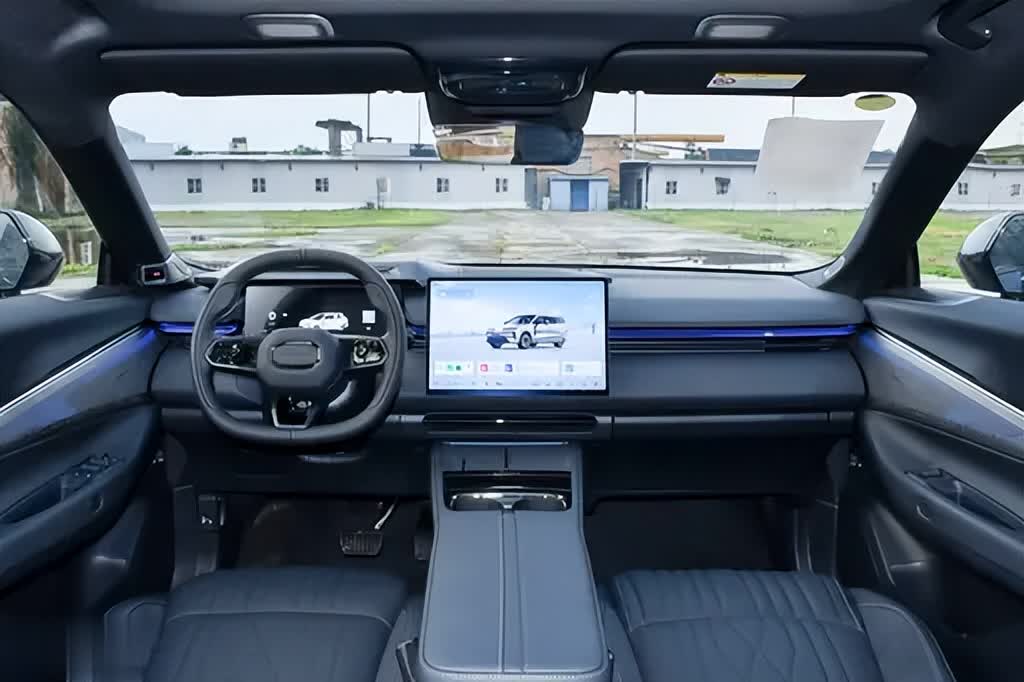 车身侧面设计是整车最吸睛的地方。首先是无框车门与隐藏式门把手的组合,这在20万元级别的SUV中并不多见,能有效凸显科技感与高级感。其次,悬浮式黑色车顶与锋利的腰线过渡自然,结合大尺寸动感轮毂,整体氛围偏向轿跑化与运动化。与传统SUV厚重的车侧不同,08EM-P给人的印象是“灵动且新潮”。车尾部分同样延续了简洁与科技的结合。贯穿式尾灯内部设计有独特的纹理,点亮后层次分明,夜间的辨识度非常高。尾部整体收紧,避免了臃肿感,让整车显得更加利落。